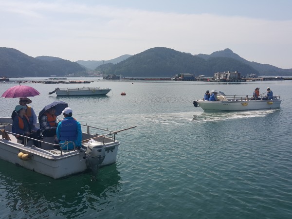 낚시배 사장님으로부터 배 운전설명을 5분정도 들은뒤곧바로 출항.