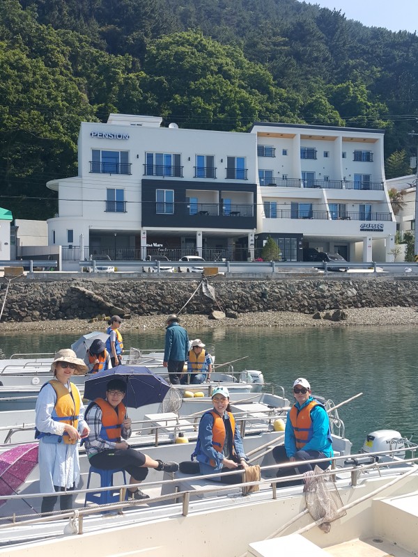 펜션 바로옆 낚시배 가게에서 줄낚시와 낚시 미끼 그리고 간단한 간식과 음료수를 준비하여